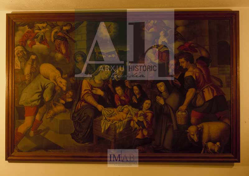 Observacions: Escena del Naixement de Jesús amb els pastors oferidors, àngels i una monja incluïda en l'escena agenollada.