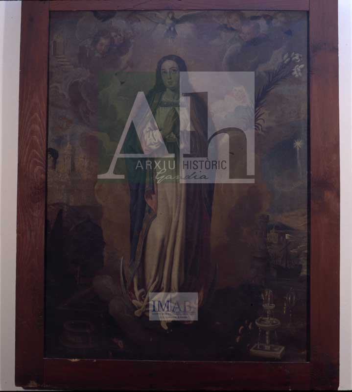 Títol: Immaculada Concepció Observacions: Pintura de la Immaculada Concepció seguint el model de Joan de Joanes i de Jeroni Jacinte Espinosa Paraules clau: ART; PINTURA; RELIGIONS Llocs: Convent de Santa Clara