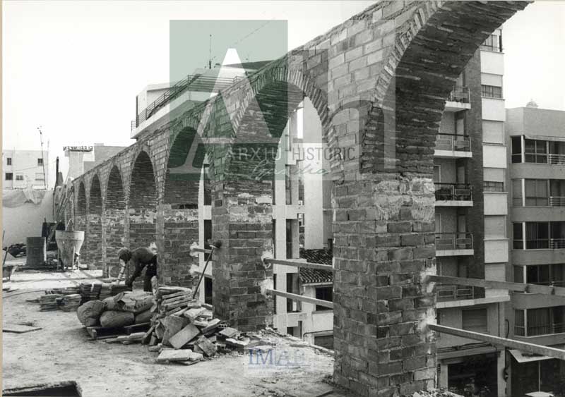 Títol: Façana de la biblioteca durant les obres de conversió dels jutjats i presó en biblioteca i arxiu