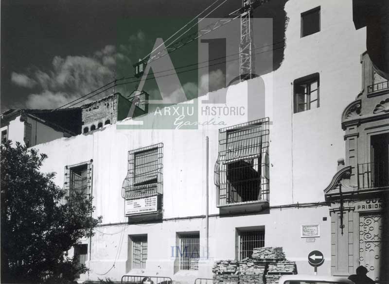 Títol: Façana de la biblioteca durant les obres de conversió dels jutjats i presó en biblioteca i arxiu.