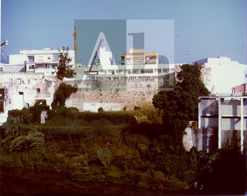 Títol: Vista de Gandia des del sud. Muralla i riu Serpis