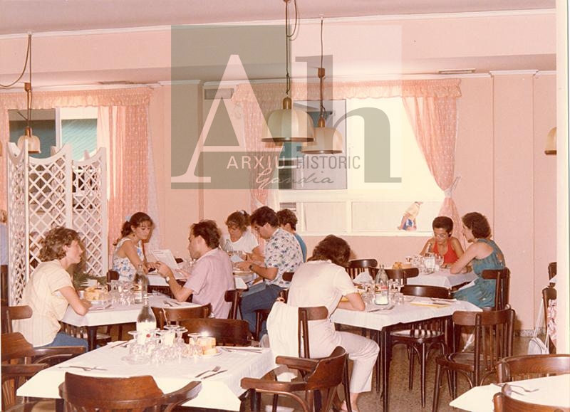 Títol: Participants de la II Universitat d'Estiu de Gandia a la cafeteria de l'hotel Porto