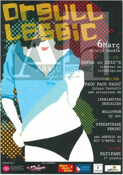 Descripció: Cartell del actes del dia de l'orgull lèsbic a Gandia