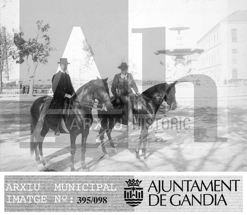 Títol: Font situada al costat del Palau de Ripalda. Apareixen dos hòmens a cavall