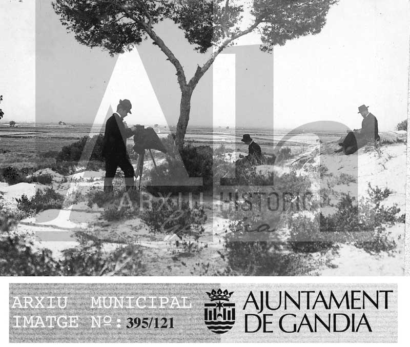 Títol: Camp amb tres homes fent fotos