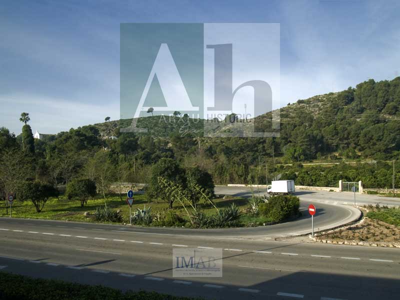 Observacions: A l'esquerre ermita de Santa Anna, al centre rotonda d'entrada al polígon Alcodar, en primer pla la carretera de València