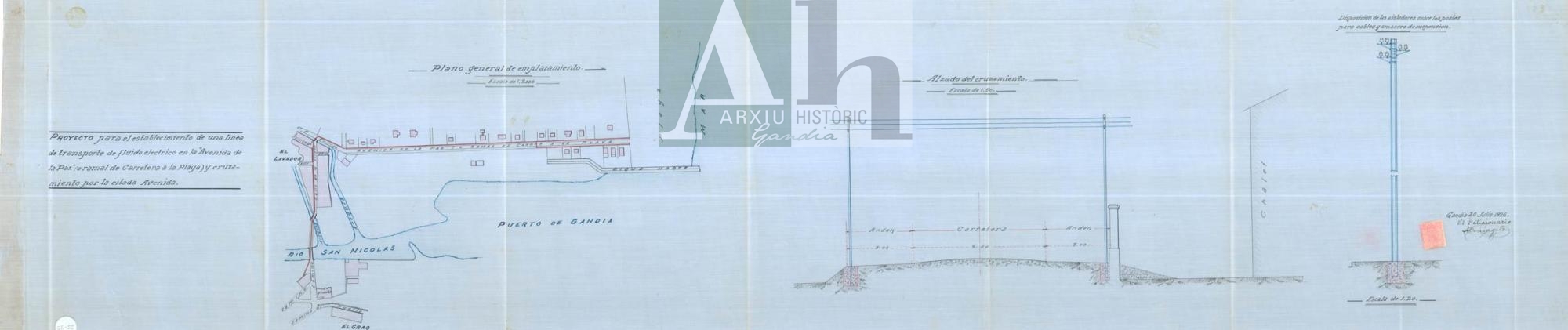 Títol: Projecte per a l'establiment d'una línea elèctrica a l'Avinguda de la Pau (o ramal de Carretera a la Platja) i creuament per la citada avinguda.