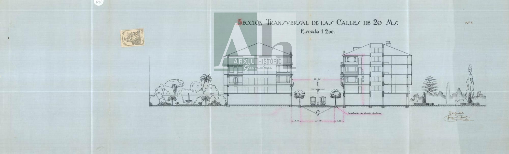 Volum i suport: 1 plànol (dues tintes), 32 x 108,3 cm. Escala: 1:200.