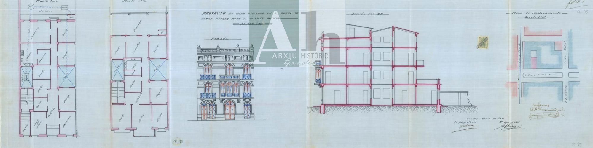 Títol: Projecte de casa vivenda al Passeig de Gómez Ferrer per a Vicente Palmer