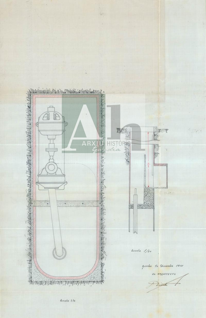 Títol: Plànol per a la construcció d'una cova i per revestir el pou de l'escorxador