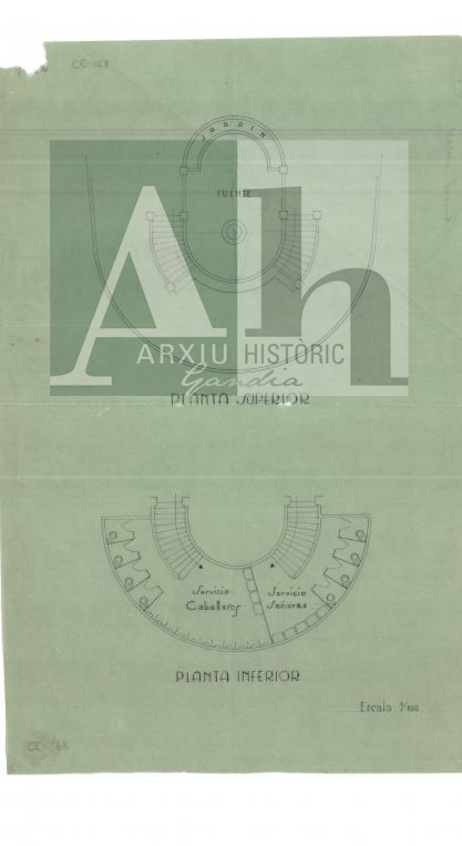 Títol: Font i serveis al Passeig de les Germanies. Planta superior i inferior.