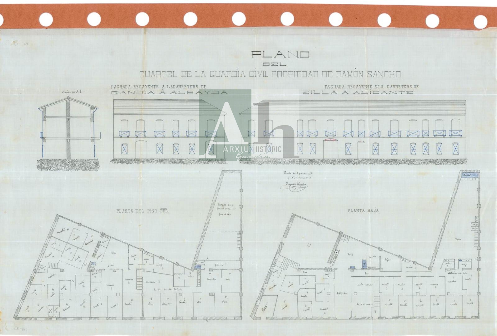 Títol: Plànol del quarter de la Guàrdia Civil situat a la cantonada entre la carretera d'Albaida i la carretera de Silla a Alacant.