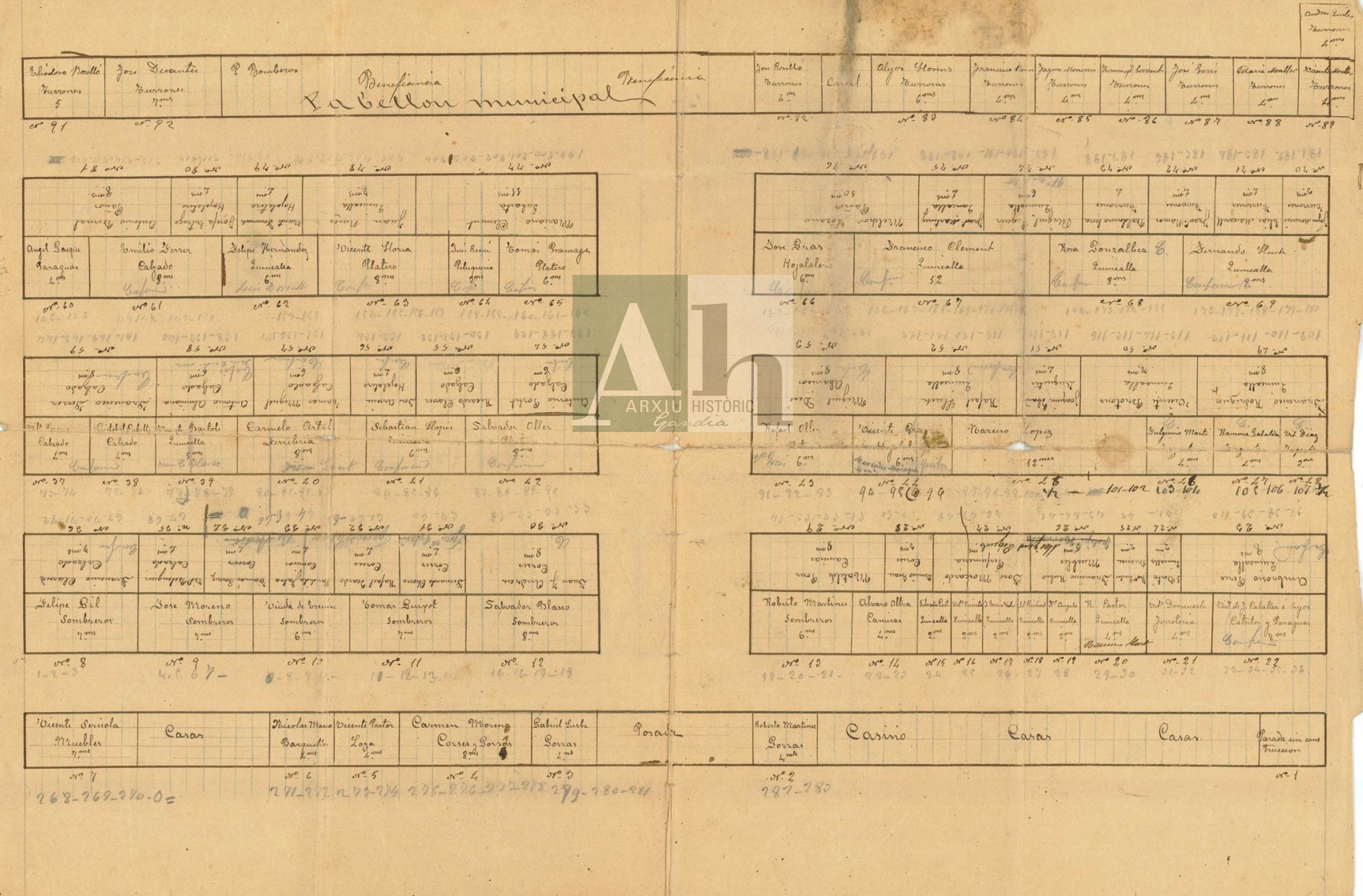 Abast i contingut: Apareix la numeració de les casetes, el nom dels propietaris i el nombre de metres de cadascun dels locals.