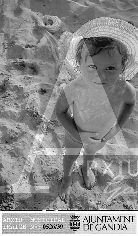 Títol: Xiqueta amb barret en la platja