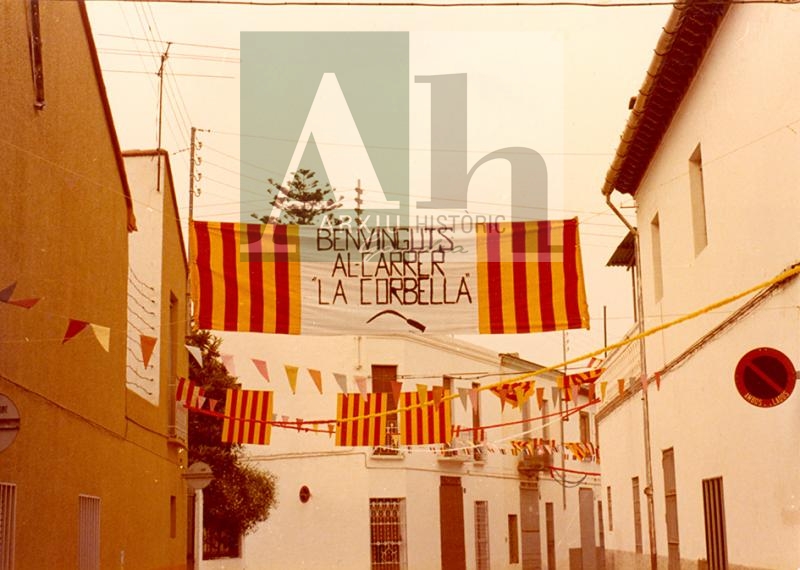 Títol: Pancarta al carrer La Corbella per a les festes de Bellreguard