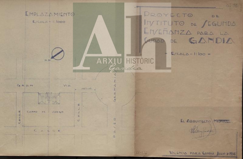 Títol: Projecte d'Institut de Segon Ensenyament. Institut Ausiàs March. Plànol d'emplaçament