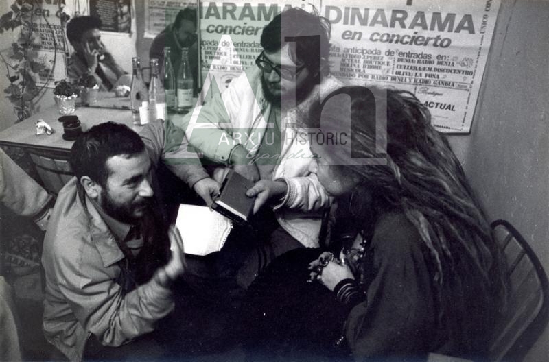 Observacions: Joan M. Monjo i Rafa Martínez entrevistant a la cantant Alaska amb motiu del concert al cine Miami de la platja.