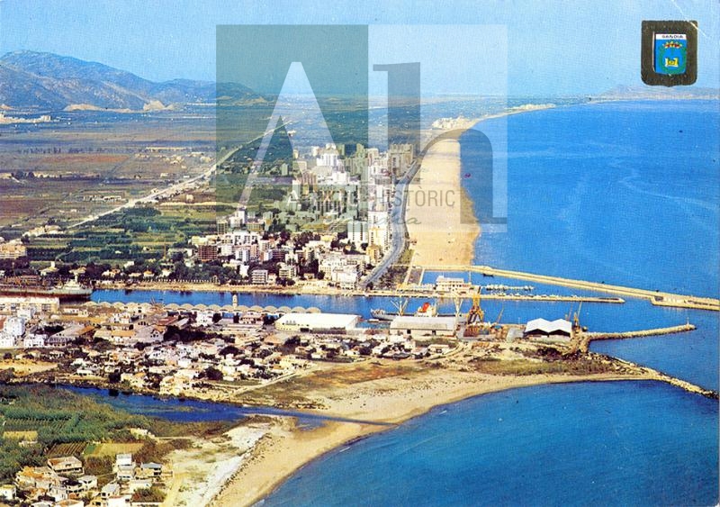 Títol: Gandia. Vista aèria, platja i port.