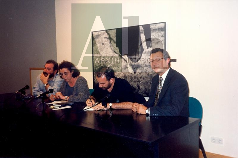 Observacions: Joan M. Monjo amb Rafa Gomar, Gabriel Garcia Frasquet i una dona sense identificar al Centre Cultural de Gandia