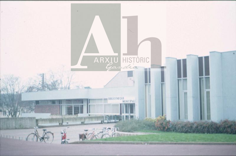 Observacions: Fotografies del viatge d'intercanvi amb Laval, ciutat francesa agermanada amb Gandia. En francés: "Bibliothèque Municipale". Està situat a la "place du 11-Novembre"