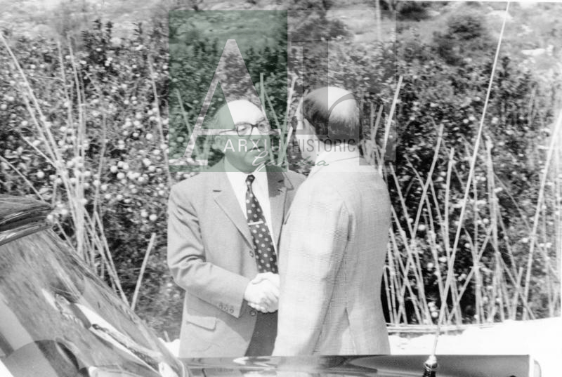 Observacions: Emmarcada en la visita realitzada pel governador civil i el president de la Diputació durant la qual es va inaugurar el carrer Ferrocarril d'Alcoi i es va inspeccionar diferents projectes en fase d'execució. D'esquena, l'alcalde i de cara, el governador civil.