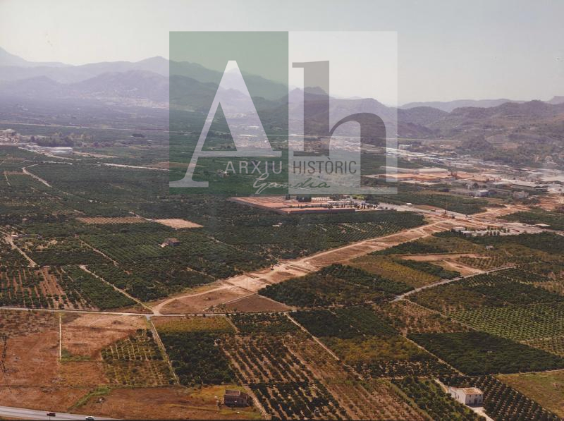 Observacions: A l'altura del cementeri municipal i l'encreuament amb la carretera d'Almoines. Al fons, el polígon industrial i el poble del Real de Gandia. S'aprecia l'alqueria de Sanchis