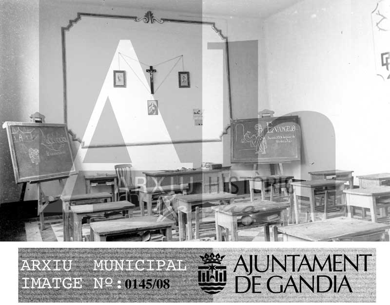 Títol: Vista interior de l'aula d'una escola