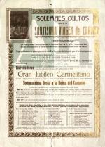 Fons: Material Gràfic Signatura: CB-0460/0000 Títol: "Solemnes cultos a la Santísima Vírgen del Carmen" Data: 1934 |