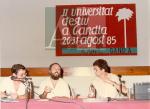 Fons: Fototeca Digital Signatura: CA-0057_0012 Títol: Santiago La Parra, Fermí Romaguera i Jesús Alonso a l'assemblea final la II Universitat d'Estiu de Gandia Data: 31/08/1985 |