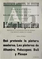Fons: Material Gràfic Signatura: CB-0703/000 Títol: "Qué pretende la pintura moderna. Los pintores de Altamira, Velázquez, Dalí y Picaso" Data: 26/03/1954 |