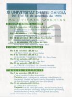 Fons: Material Gràfic Signatura: CB-0614/0000 Títol: "XI Universitat d'Estiu Gandia. Activitats Obertes" Data: 1994 |