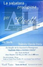 Fons: Material Gràfic Signatura: CB-0620/0000 Títol: "La sabatera prodigiosa. Una obra de Federico García Lorca" Data: 2001 |