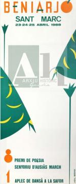 Fons: Material Gràfic Signatura: CB-0209/0000 Títol: 8é Premi de poesia senyoriu d'Ausiàs March. 1r aplec de dansa a la Safor. Autor: VIDAL MIÑANA Data: 23/04/1988 |