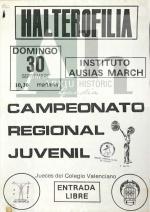 Fons: Material Gràfic Signatura: CB-0089/0000 Títol: "Halterofilia. Campeonato regional juvenil" Data: 30/09/1984 |