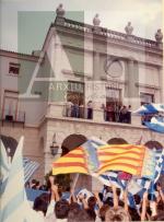 Fons: Fototeca Digital Signatura: CA-0377_0007 Títol: Parlament de Quique Peiró, jugador del C.F. Gandia, des del balcó de l'Ajuntament Autor: AMALIO Data: 15/06/1986 |