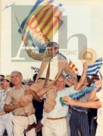 Fons: Fototeca Digital Signatura: CA-0377_0011 Títol: Celebració amb els aficionats de l'ascens a 2ª Divisió B del C.F. Gandia Autor: AMALIO Data: 15/06/1986 |