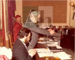 Fons: Fototeca Digital Signatura: CA-0312_0014 Títol: El regidor Enric Peris Vidal en el moment de la votació per a elegir a l'alcalde. Autor: LAPORTA, Pedro ![]() Data: 19/04/1979 |